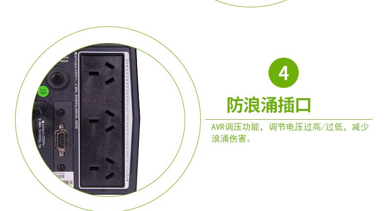 純電涌插座:保護二級電子設(shè)備免受由于電涌和尖峰造成的損壞,而不會降低用于在停電時為主要電子設(shè)備供電的電池功率。